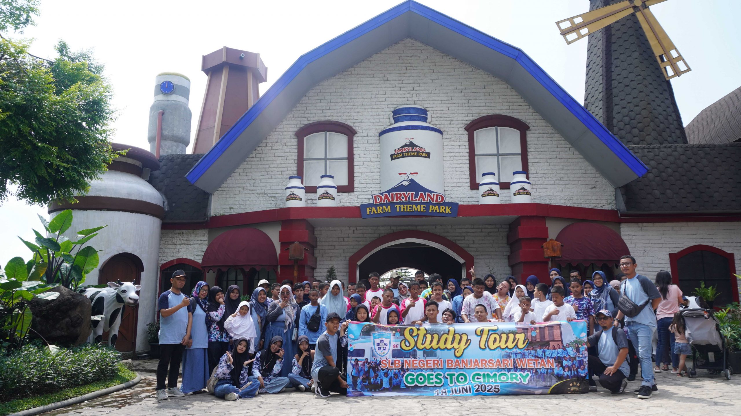 Cimory Dairyland Farm Theme Park Prigen adalah sebuah wahana seru dengan destinasi lengkap: edukatif dan interaktif yang menghadirkan pengalaman peternakan, proses susu, hiburan, dan spot foto yang bagus. Untuk mendukung proses pembelajaran yang bermakna dan kontekstual, SLB Negeri Banjarsari Wetan menyelenggarakan kegiatan Outing Class ke Cimory Dairyland Farm Theme Park Prigen, Pasuruan yang diikuti semua peserta didik dan didampingi oleh wali murid. Kegiatan ini bertujuan untuk memberikan pengalaman belajar langsung di luar kelas yang menyenangkan dan edukatif bagi peserta didik. Cimory Dairyland merupakan taman wisata edukatif bertema peternakan modern yang menyediakan berbagai wahana interaktif seperti petting zoo, memberi makan hewan, melihat proses pemerahan susu, serta mengenal aneka satwa domestik dan eksotik. Selain itu, peserta didik juga dapat menikmati wahana edukatif seperti Museum Susu dan Museum Lulu yang menyajikan informasi dalam bentuk visual dan interaktif. Jam 03.30 WIB peserta didik yang didampingi oleh wali murid sudah berkumpul di sekolah. Jam 04.00 WIB. Christ Darmawan, S.Pd. selaku koordinator kegiatan outing class mengapsen dan memberikan beberapa pengarahan terkait kegiatan tersebut. Setelah itu semua berdoa dan menuju bis masing-masing yang sudah menunggu di depan sekolah.